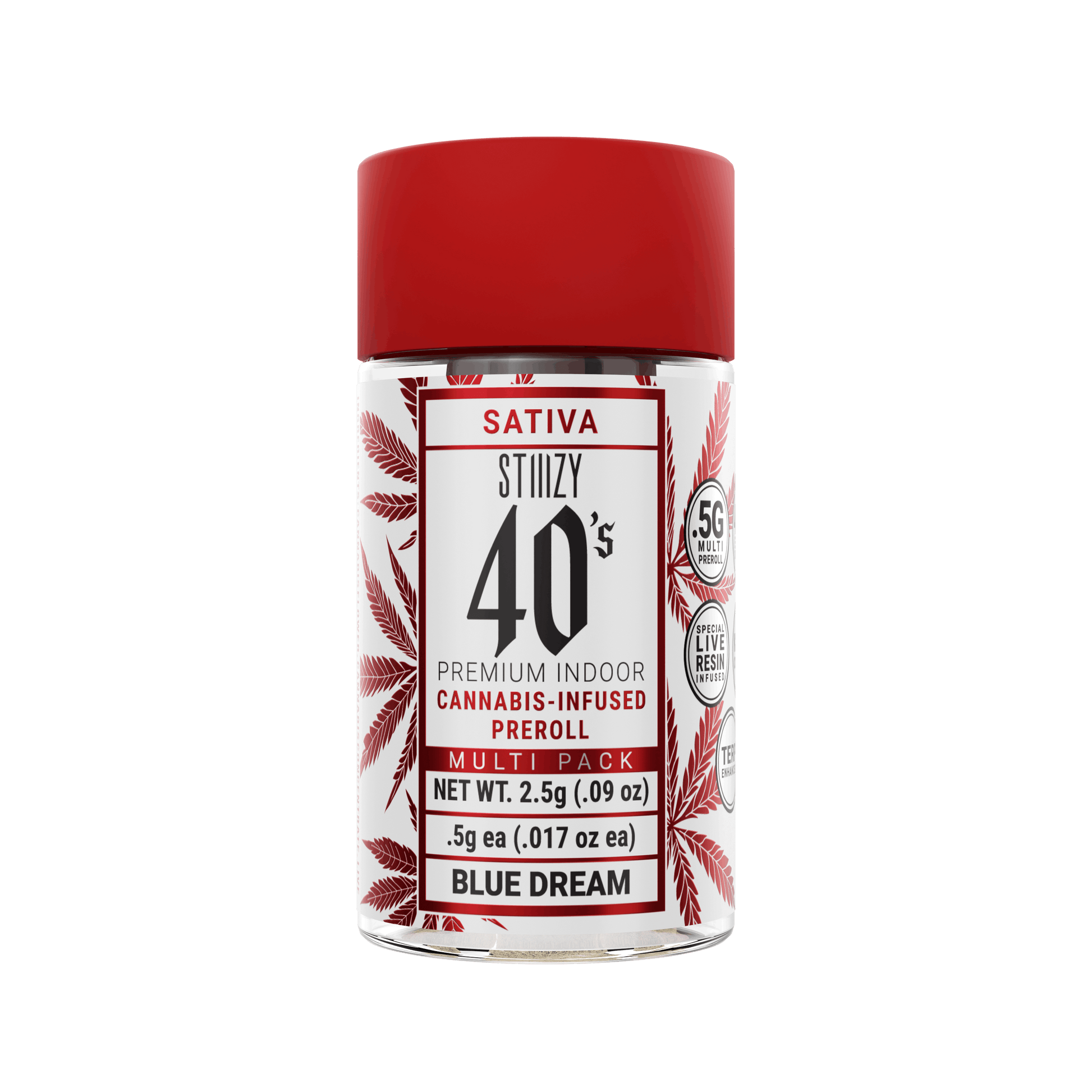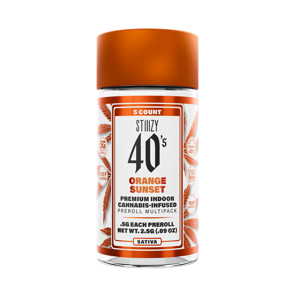 STIIIZY 40's Pre Rolls are premium cannabis joints that are infused with live resin and dusted with kief. They're named '40's' due to their potent 40% total cannabinoid content.